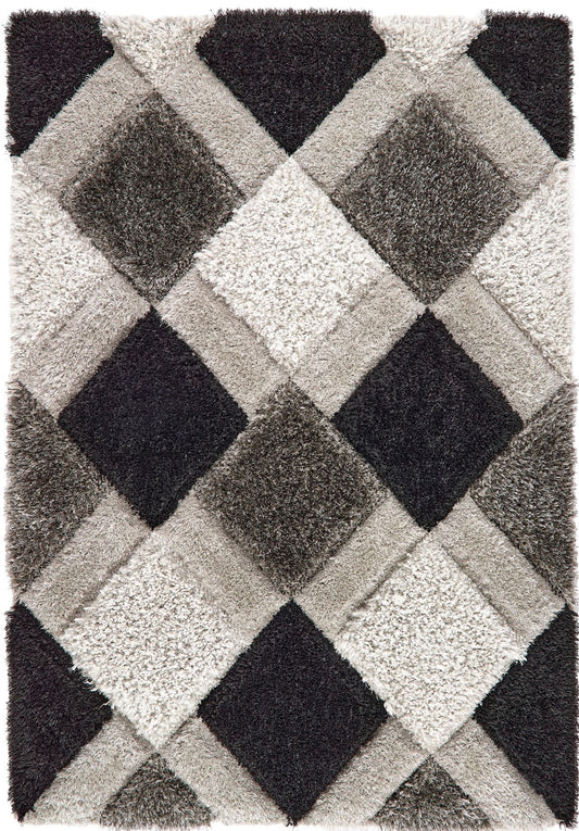 Origins 3D GEO Soft Silky Shaggy Modern Diamond Rug in Grey Black