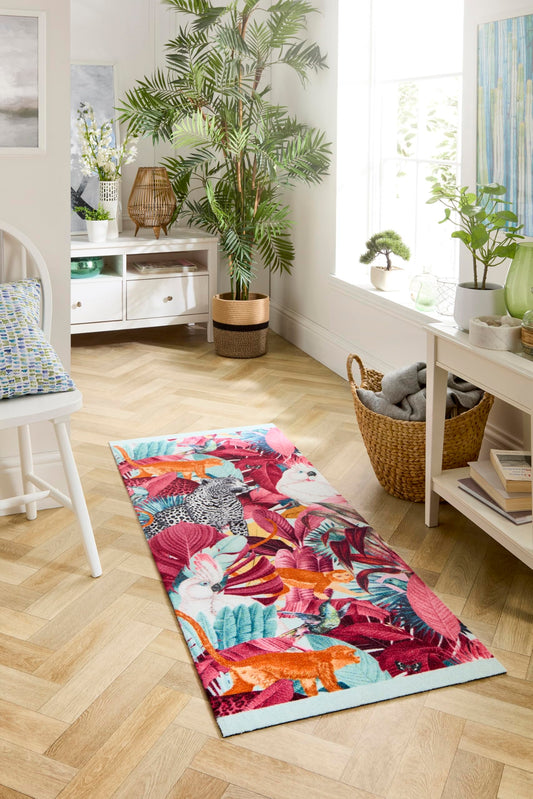Washable Studio Tropical Rug Non Slip Mat for Kitchen Hallway Hall Home Entrance Multi Coloured Rug in 65x150 cm (2'4"x5')