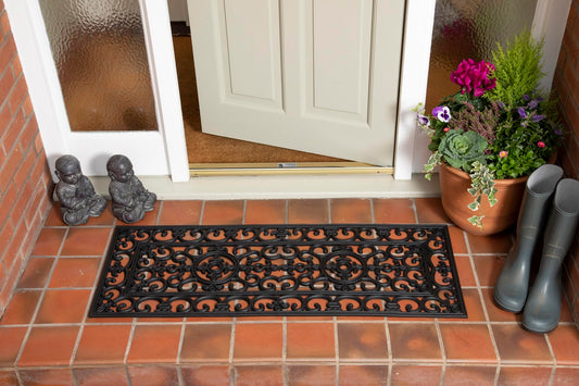Radcliffe Iron Effect Rubber Black Door Mat Anti-Slip Mud Stopper Heavy Duty Shoe Wiper Inside & Outside Doormat