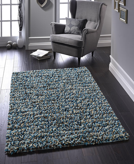 Rocks Tubular Pile Shaggy Wool Rug Hand Woven Heavy Luxurious Design