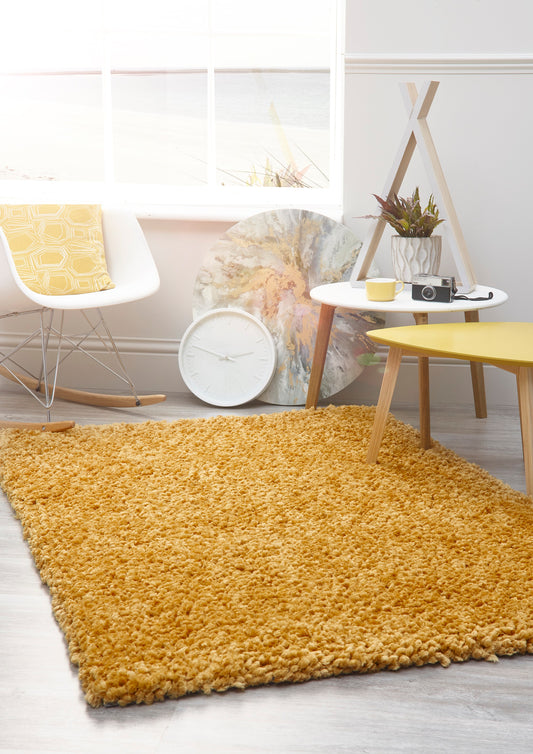 Origins Portland Modern Plain High Pile Super Soft Fluffy Shaggy Rug in Ochre Yellow