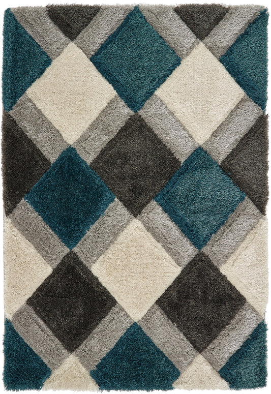 Origins 3D GEO Soft Silky Shaggy Modern Diamond Rug in Teal Blue