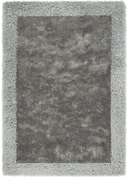 Origins Shimmer Silky Shaggy Hand Tufted Carpet Border Modern Soft Fluffy Shag Rug in Silver