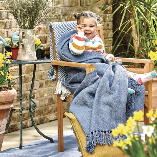 Hug Rug Woven Plain Throw Denim Blue Blanket Bed Sofa Chair Cover in 130 x 180 cm