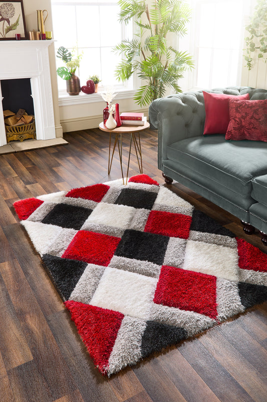 Origins 3D GEO Soft Silky Shaggy Modern Diamond Rug in Red