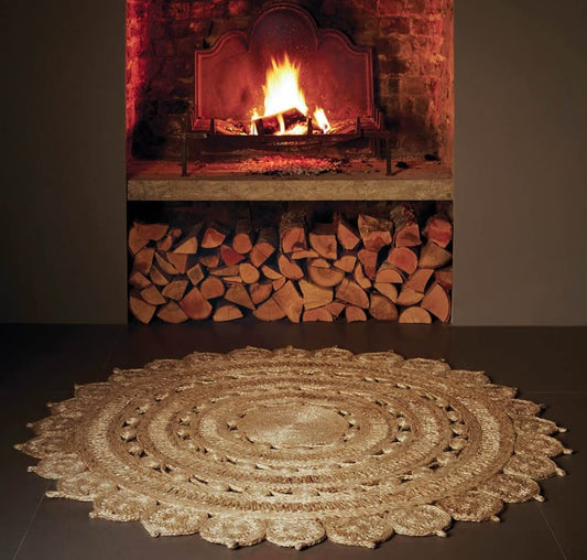Zira Circular Jute Rug for Living Room Hallway Bedroom Dining Room Table Quality Jute Hand Made Round Rug in Natural 150 x 150 cm