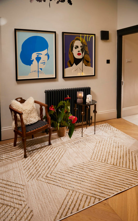 Pyramid Geometric Striped Beige Rug for Living Room Bedroom Soft Silky Contemporary Modern Retro Style Rug