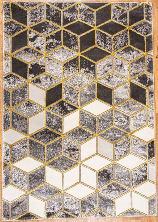 Marbled Geometric Rug Modern 3D Cubic Patterned Carpet for Living Room Bedroom Bianco 207IA Soft Quality Rug