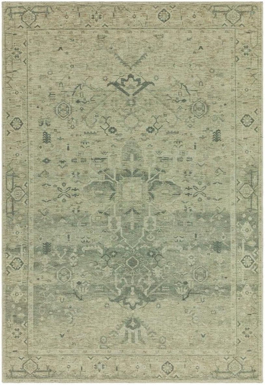 Kaya Traditional Chenille Rug – Vida Green – Classic Bordered Soft Flatweave Carpet