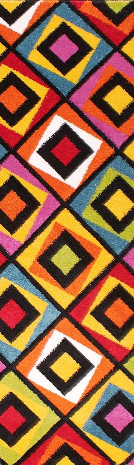 Washable Runner Rug for Entryway, Home Entrance, Kitchen, Hallway Doorway – Striped Rainbow Multi