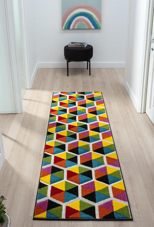 Hand-Carved Geometric Multi-Coloured Rug – Marco Multi – Bold Honeycomb Pattern Rug for Living Room or Bedroom