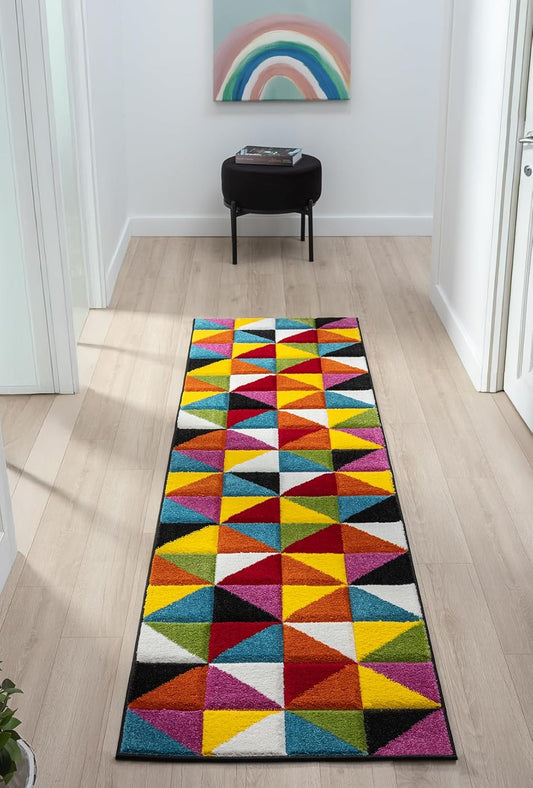 Hand-Carved Geometric Multi-Coloured Rug – Tampa Multi – Medium Triangle Design Rug for Living Room or Bedroom