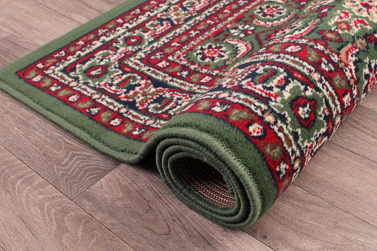 Traditional Poly Esta Rug – Classic Green Oriental Bordered Soft Area Carpet for Living Room, Hallway & Bedroom