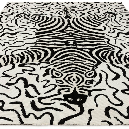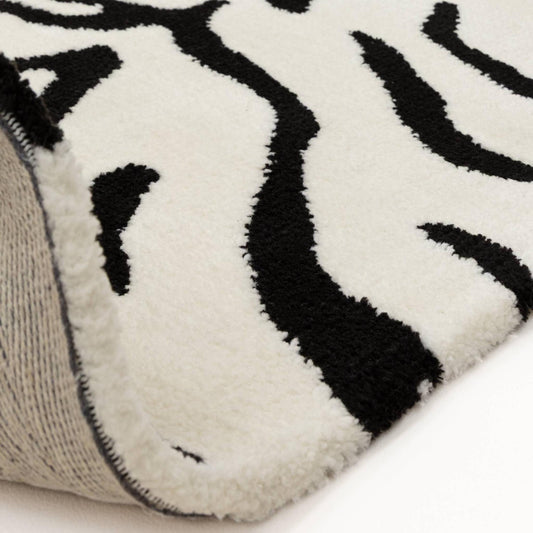 Wilder Zebra Mono Animal Inspired Black & White Rug – Modern Soft Textured Polyester Carpet