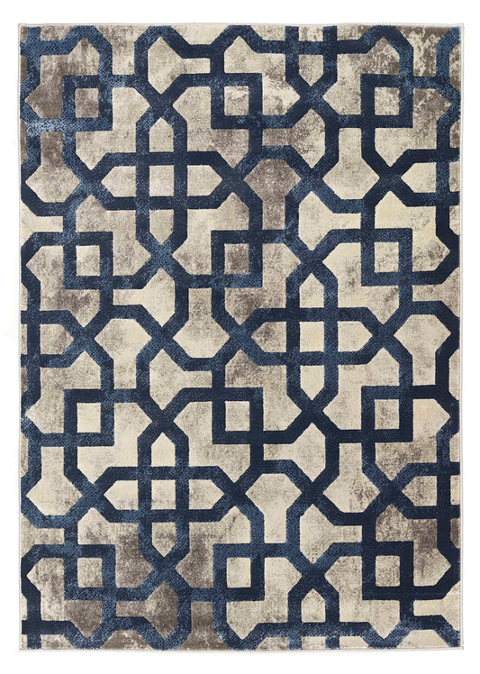 Nexus Octagon Navy Blue Wool Viscose Hand Carved Geometric Rug – Luxurious Soft