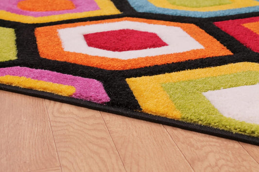 Hand-Carved Geometric Multi-Coloured Rug – Marco Multi – Bold Honeycomb Pattern Rug for Living Room or Bedroom
