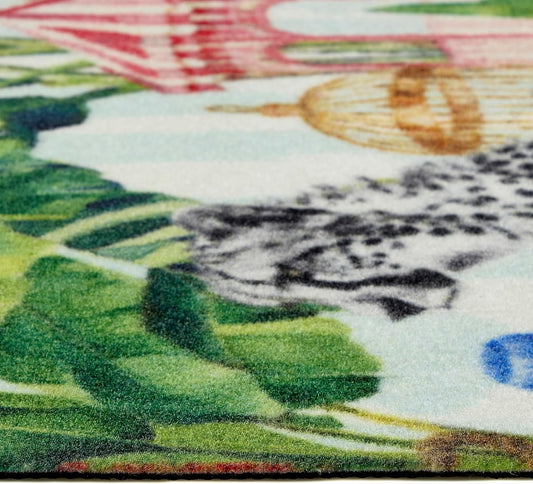 Washable Studio Tropical Rug Non Slip Mat for Kitchen Hallway Hall Home Entrance Multi Coloured Lux Leopard Rug in 65x150 cm