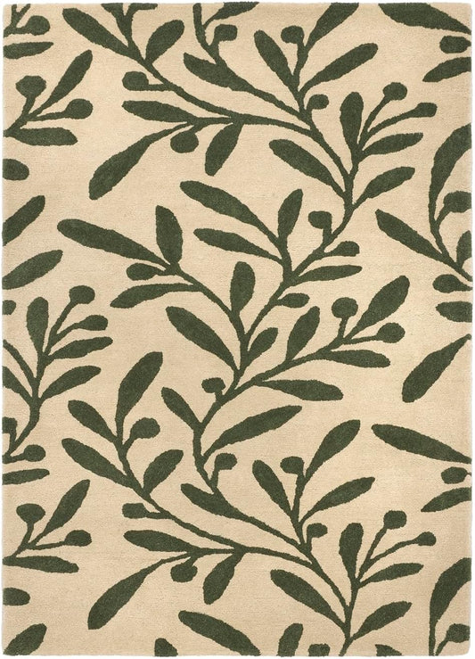 Trailing Leaf Wool Rug – Hand-Tufted Botanical Wool Carpet in Olive Green & Beige