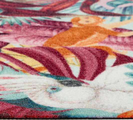 Washable Studio Tropical Rug Non-Slip Mat for Kitchen Hallway Entrance – Multi-Coloured Exotic Palms Rug – 65x150 cm (2’2” x 5’)
