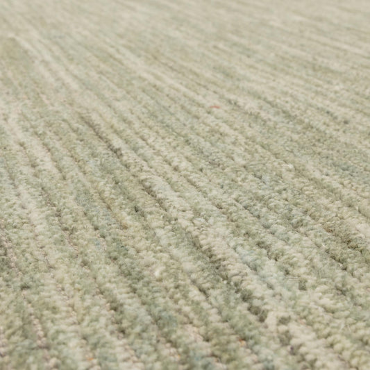 Hazy Pistachio Green Handwoven Rug – Tip-Sheared Finish Soft Wool Blend Plain Striped Carpet for Modern Interiors