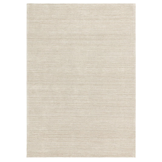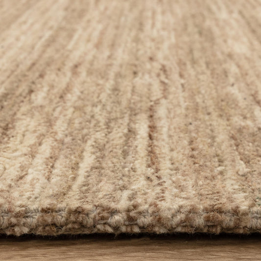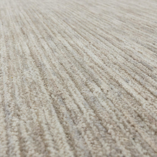 Hazy Stone Beige Natural Handwoven Rug – Tip-Sheared Finish Soft Wool Blend Plain Striped Carpet for Modern Interiors