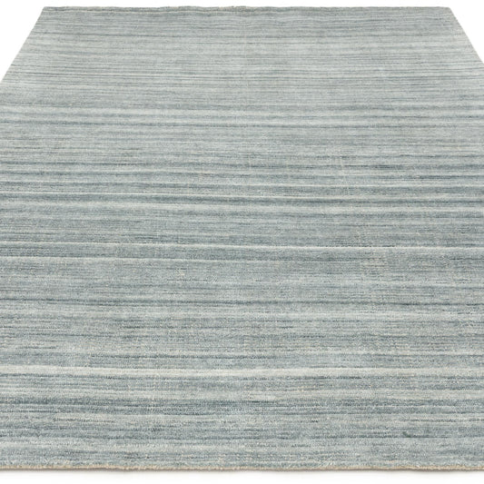Hazy Sea Blue Handwoven Rug – Tip-Sheared Finish Soft Wool Blend Plain Striped Carpet for Modern Interiors