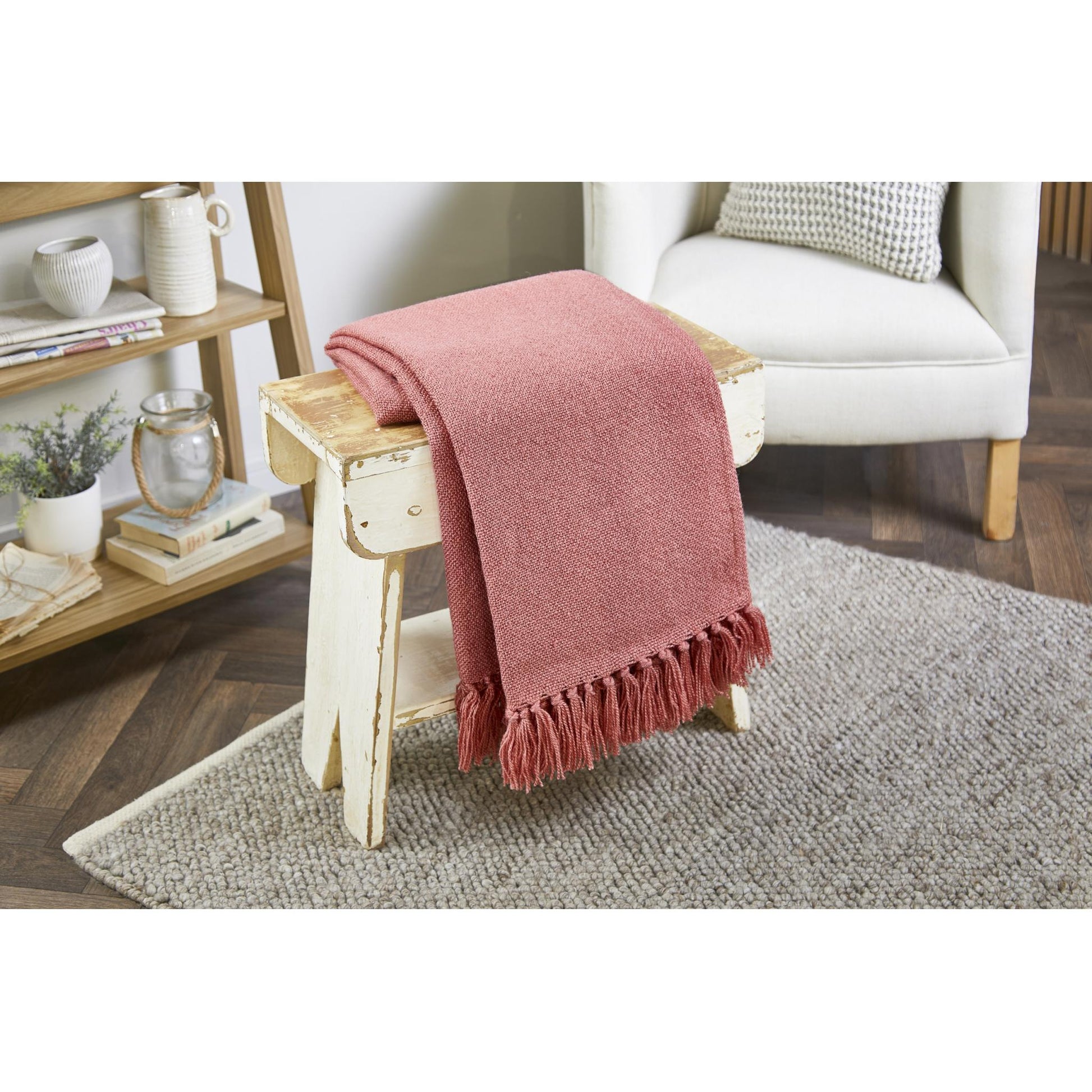 Hug Rug Gewebter, einfarbiger Überwurf in Korallenrosa, Decke für Bett, Sofa, Stuhl, 130 x 180 cm