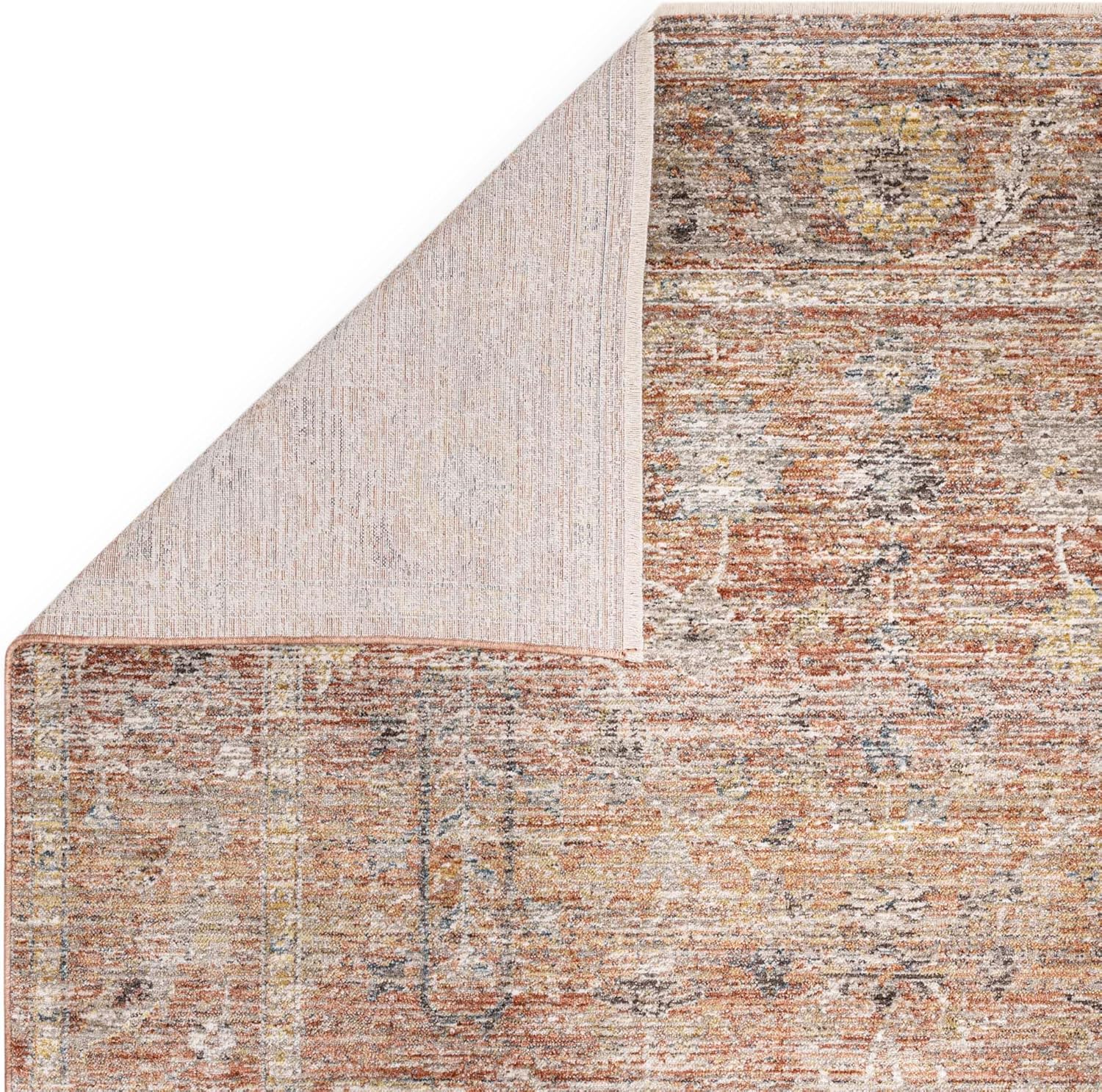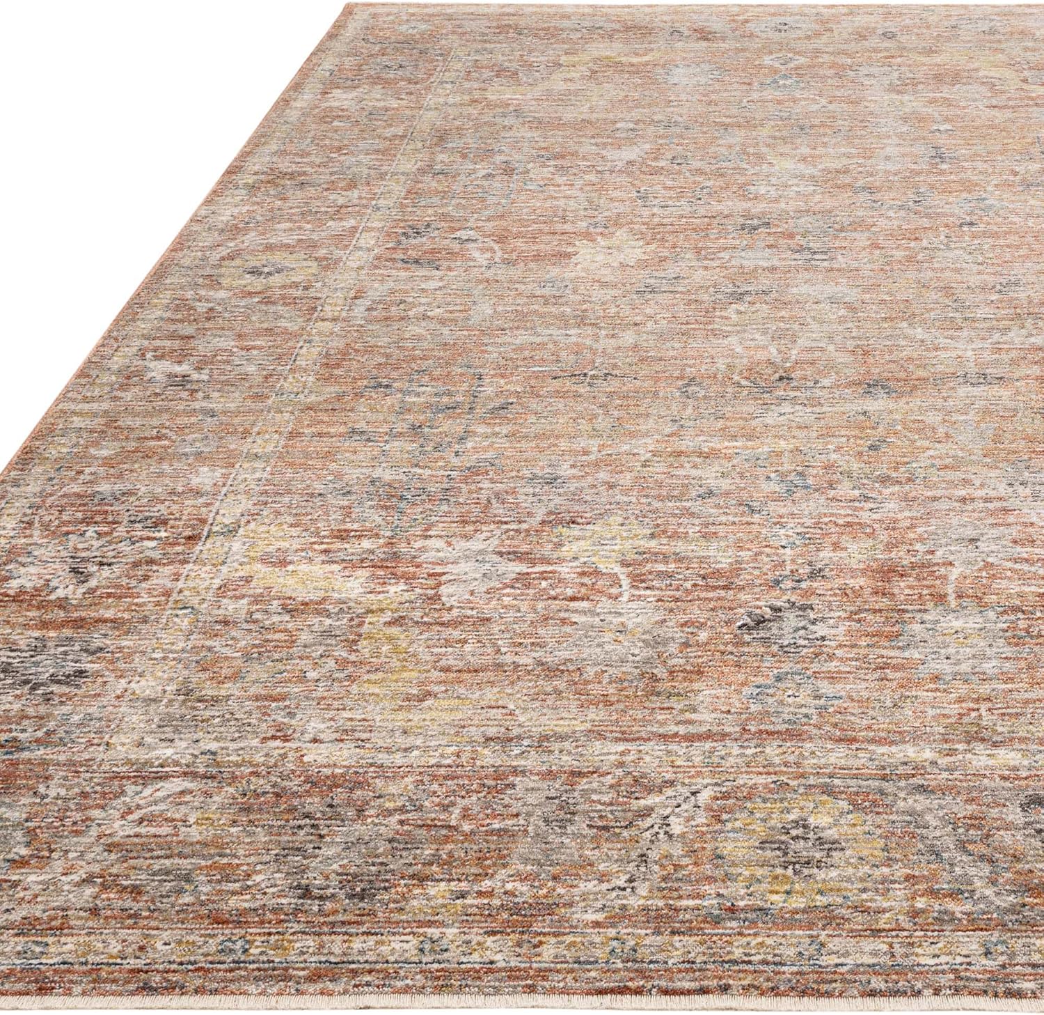 Der Läufer wird aus Hochleistungs-Polyestergarnen mit Baumwollrücken maschinell gewebt, wodurch ein weiches und dennoch strapazierfähiges Gewebe mit niedrigem Flor entsteht. Er imitiert das Aussehen eines antiken Teppichs und besticht durch einen imitierten Überfärbeeffekt und ein dezent glänzendes Finish, das das detaillierte Muster hervorhebt.