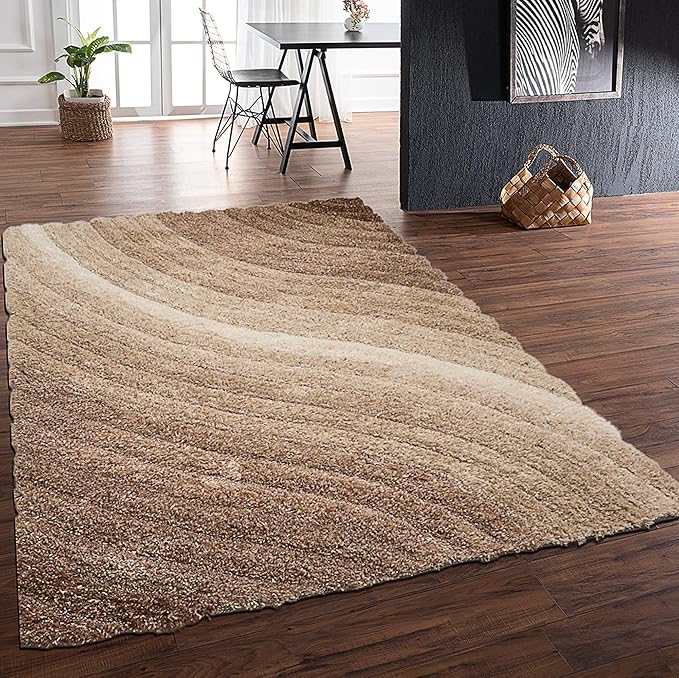Lena Wave 3D Shaggy Teppich – Mokka – 160x230 cm Weicher Plüsch Hochflor Teppich