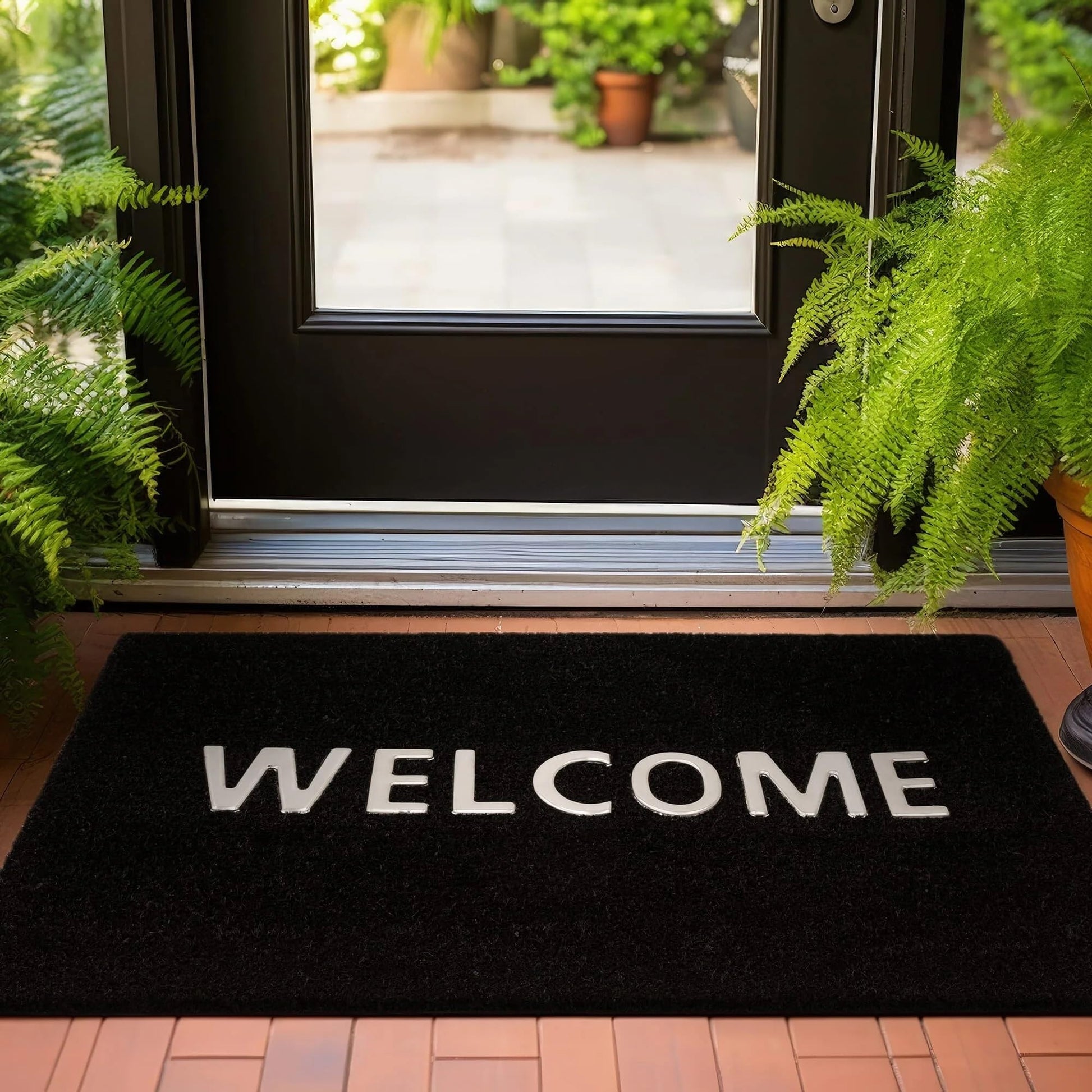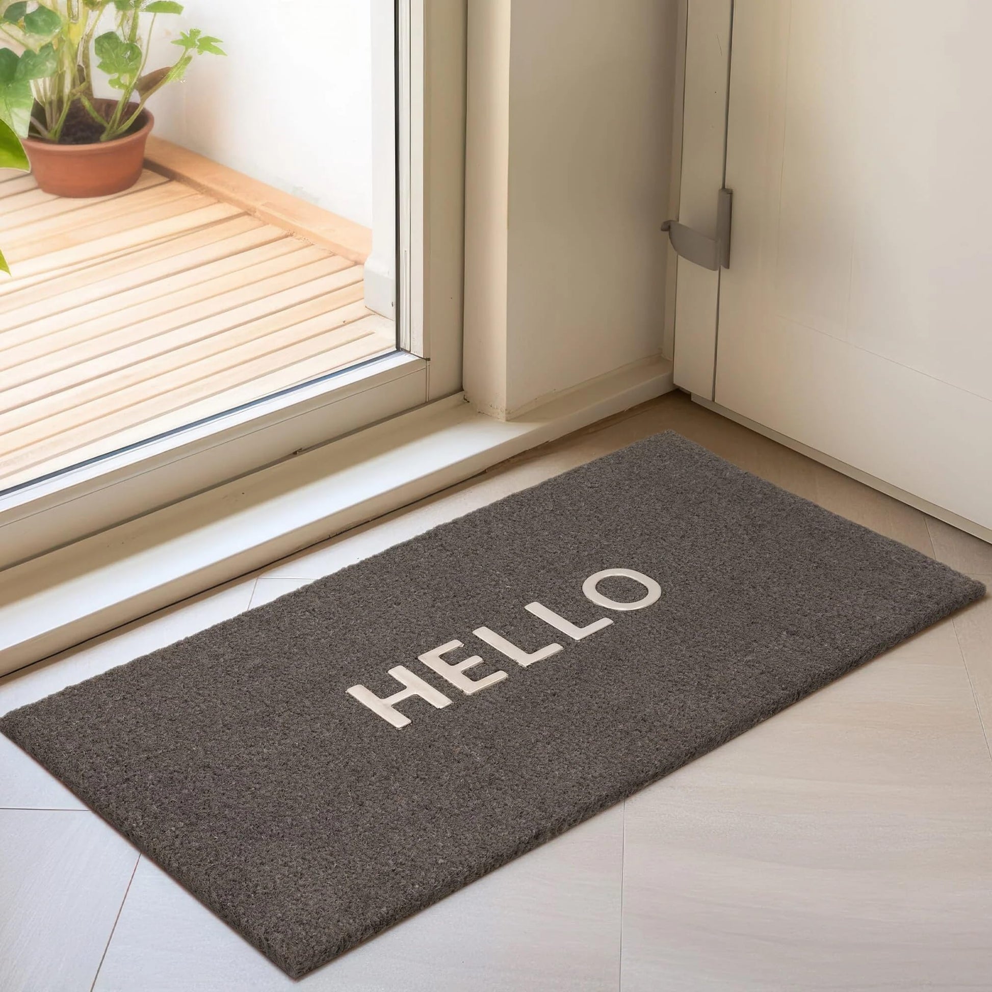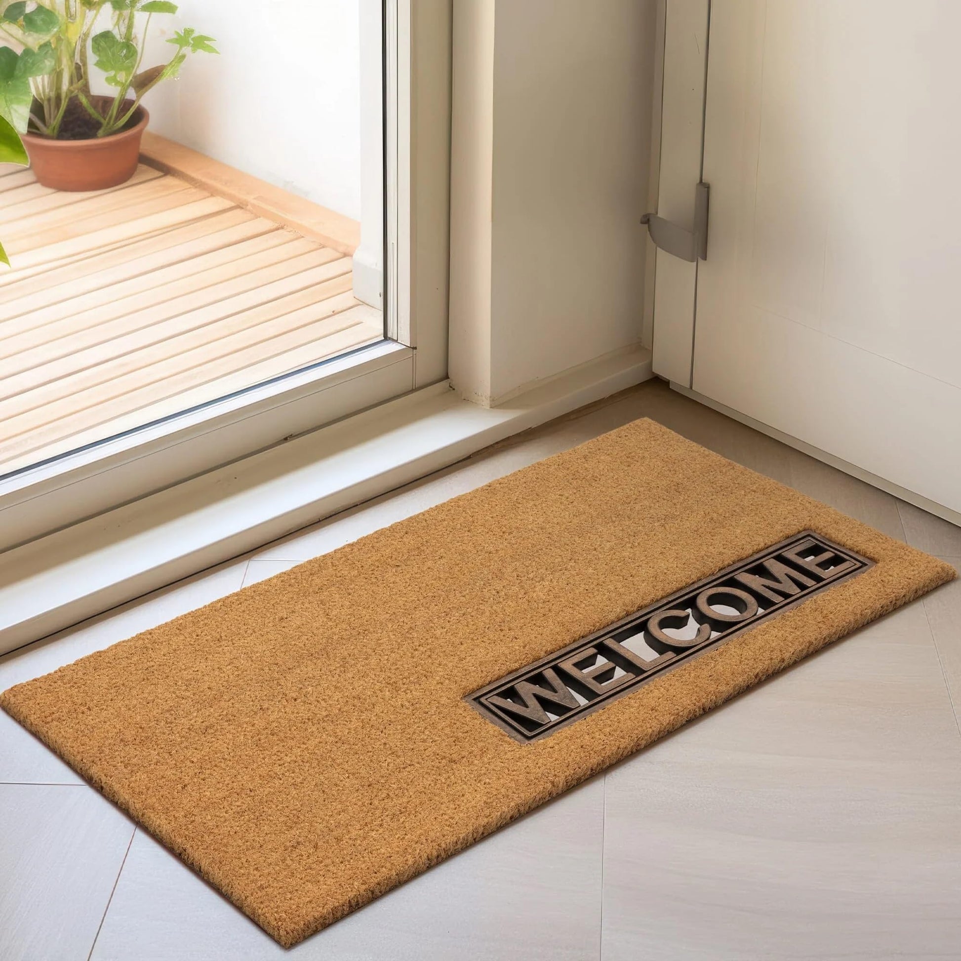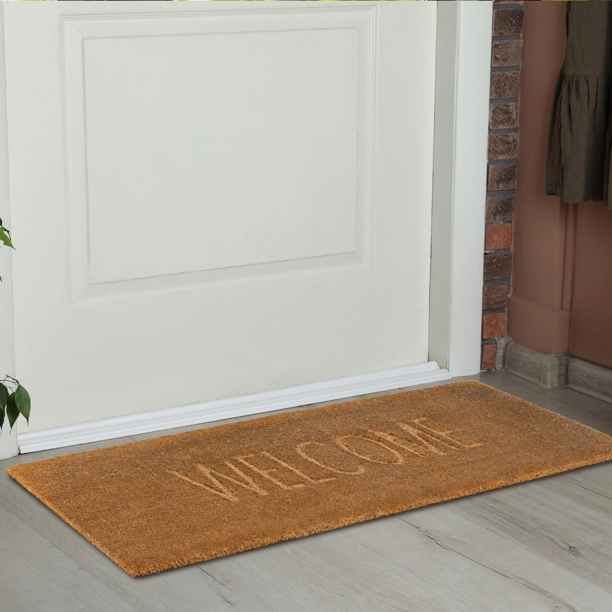 Fußmatte mit Aufschrift „Welcome Greetings“ für Tür, Eingang, Zuhause, Garten, Außenbereich, natürliche Kokosfaser, langlebiger Schlammstopper, Schmutzfänger, Bodenmatte, rutschfeste Fußmatte