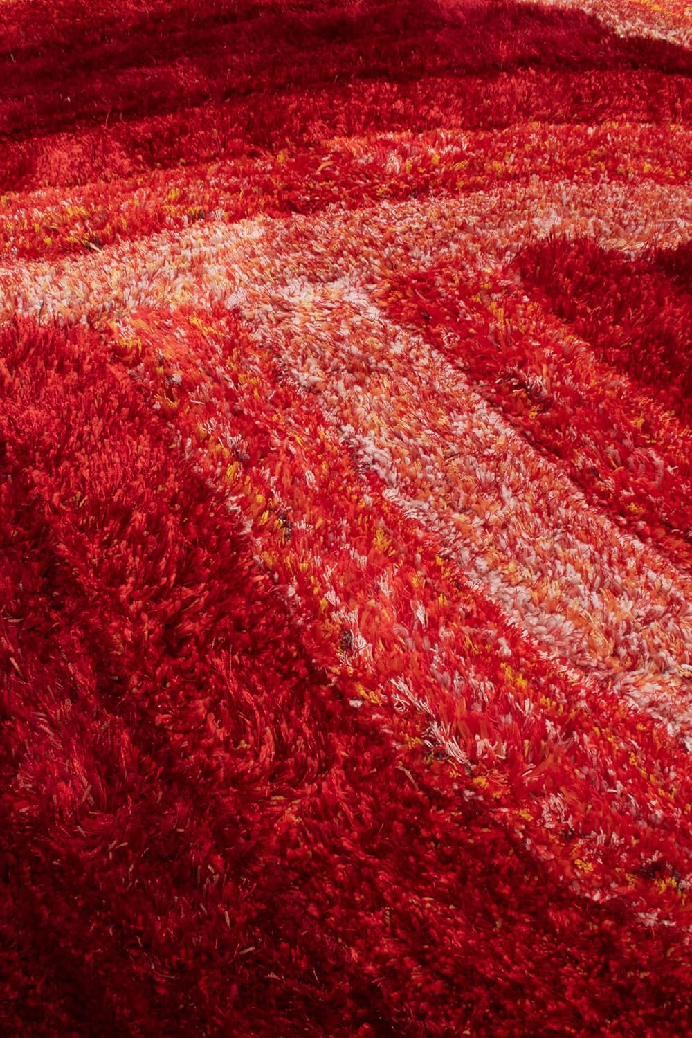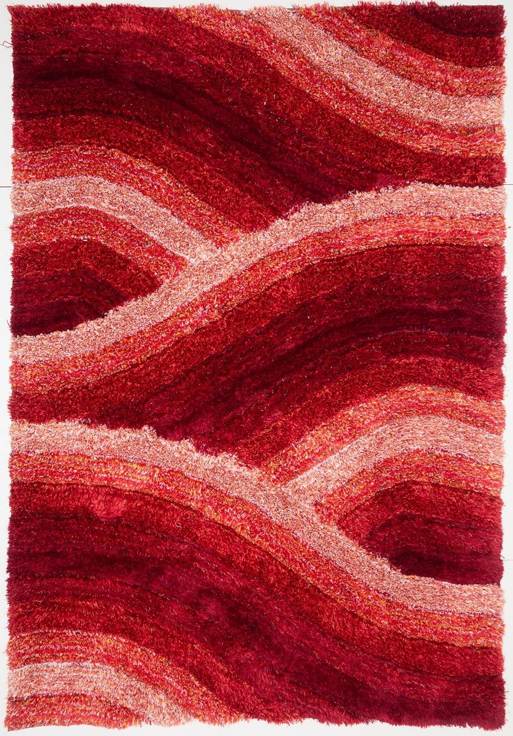 Verleihen Sie Ihrem Interieur Struktur und Wärme mit dem Wave 3D Shaggy-Teppich in leuchtendem Rot. Mit seiner geformten Hochfloroberfläche und dem modernen Wellenmuster bietet dieser Teppich sowohl luxuriöse Weichheit als auch zeitgenössischen Stil.