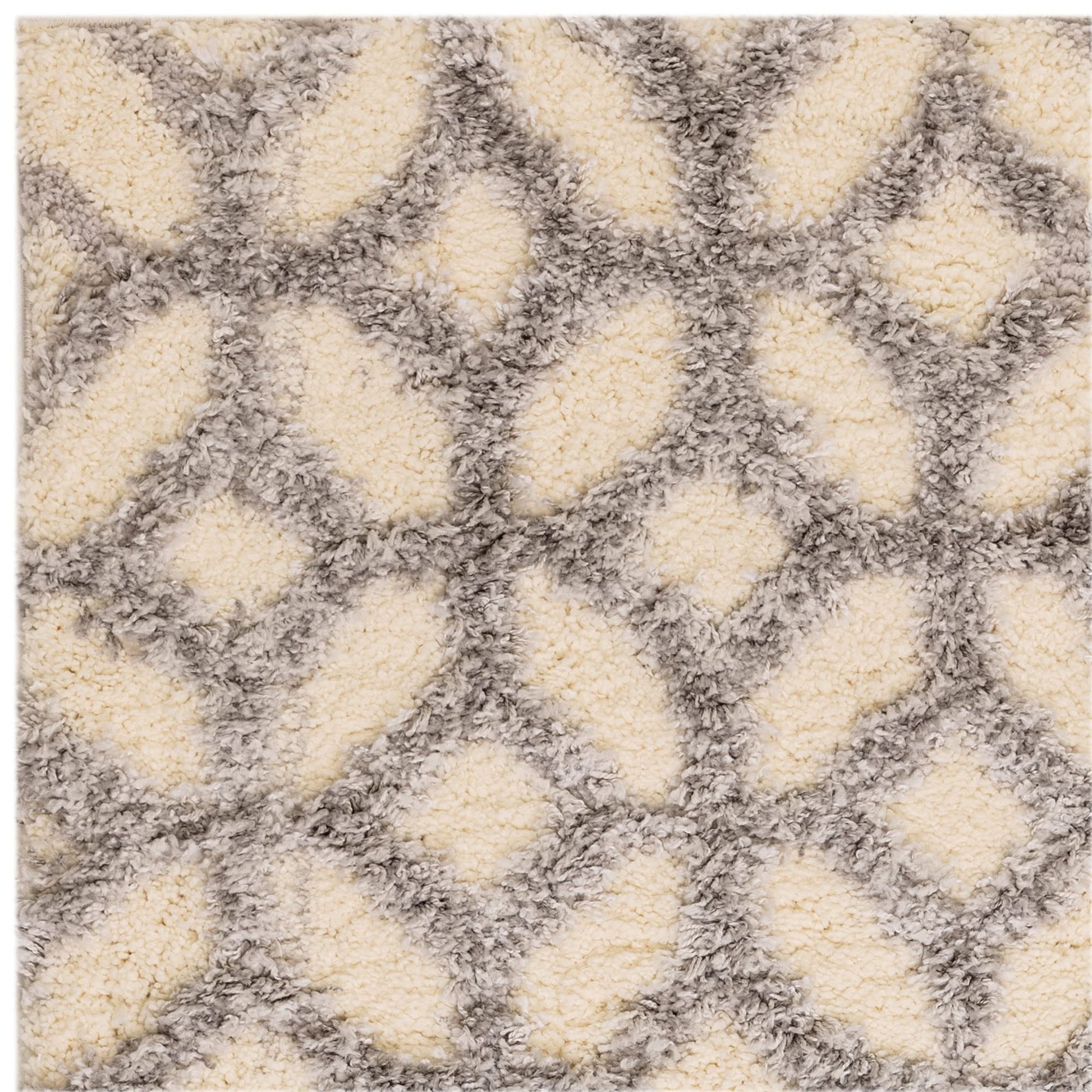 - Diese eindrucksvolle Teppichkollektion Porcelain zeichnet sich durch prächtige, zottelige Stoffe mit einem von Stämmen inspirierten, primitiven Rautenmuster in einer kosmopolitischen Farbpalette aus Creme und Grau aus.