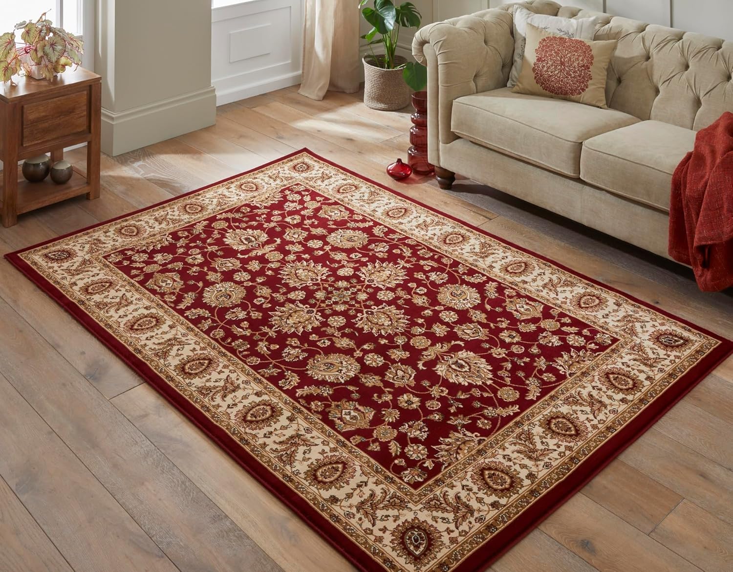 Traditioneller Teppich mit Bordüre, klassischer Grand Heritage GH102 Million Point Detail-Teppich – Rot