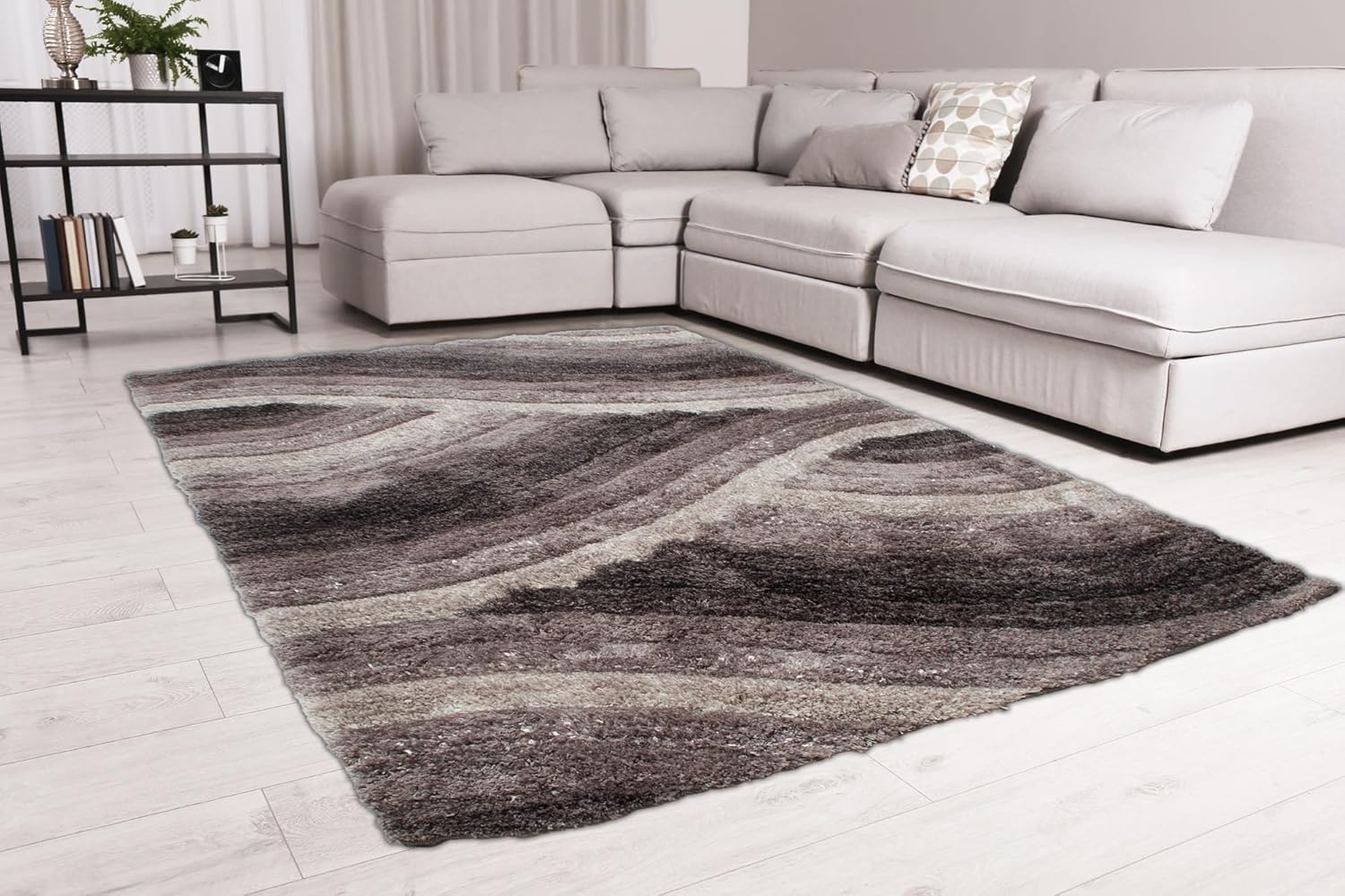 Perfekt für Wohnzimmer, Schlafzimmer, Essbereiche oder Kinderzimmer, der Wave Shaggy Teppich in Holzkohle bringt Energie und moderne Eleganz in jeden Raum.