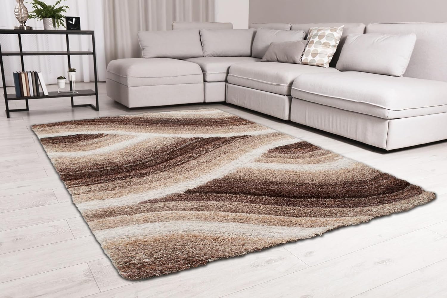 Wave 3D Shaggy Teppich – Latte – 160x230 cm Weicher Plüsch Hochflor Teppich