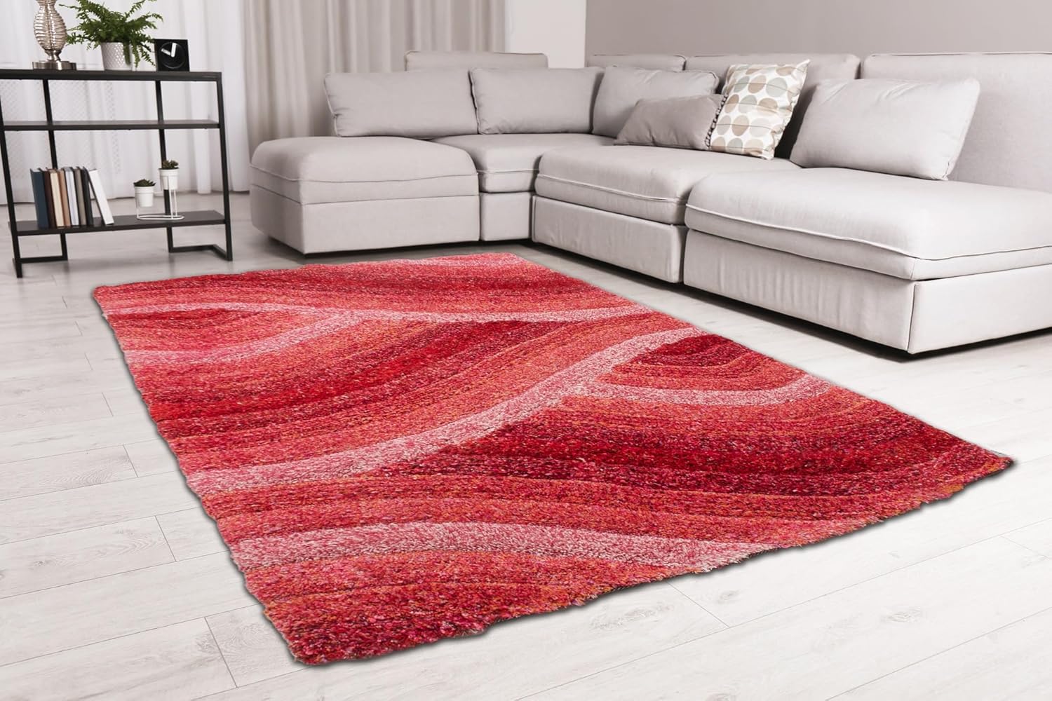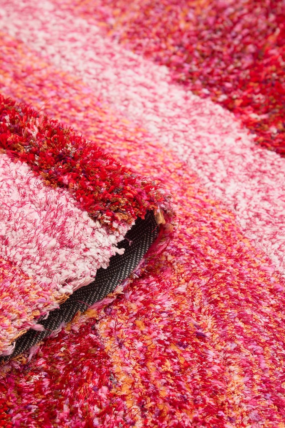 Der Wave Shaggy-Teppich in Pink ist perfekt für Wohnzimmer, Schlafzimmer, Essbereiche oder Kinderzimmer und bringt Energie und moderne Eleganz in jeden Raum.