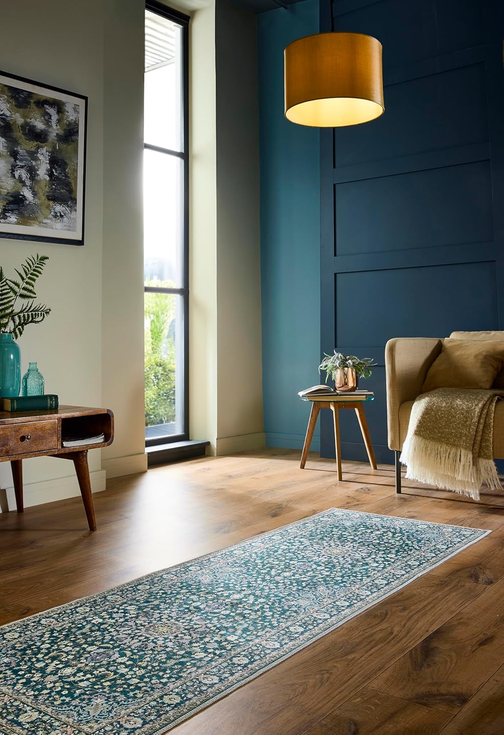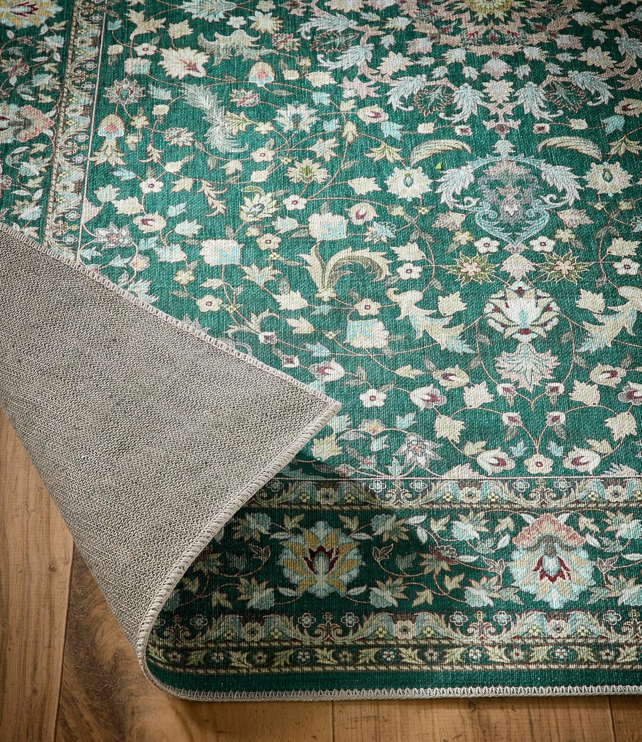 Windsor Smaragdgrüner waschbarer Läufer – Traditioneller Vintage-Anti-Rutsch-Flurteppich (67 x 200 cm)