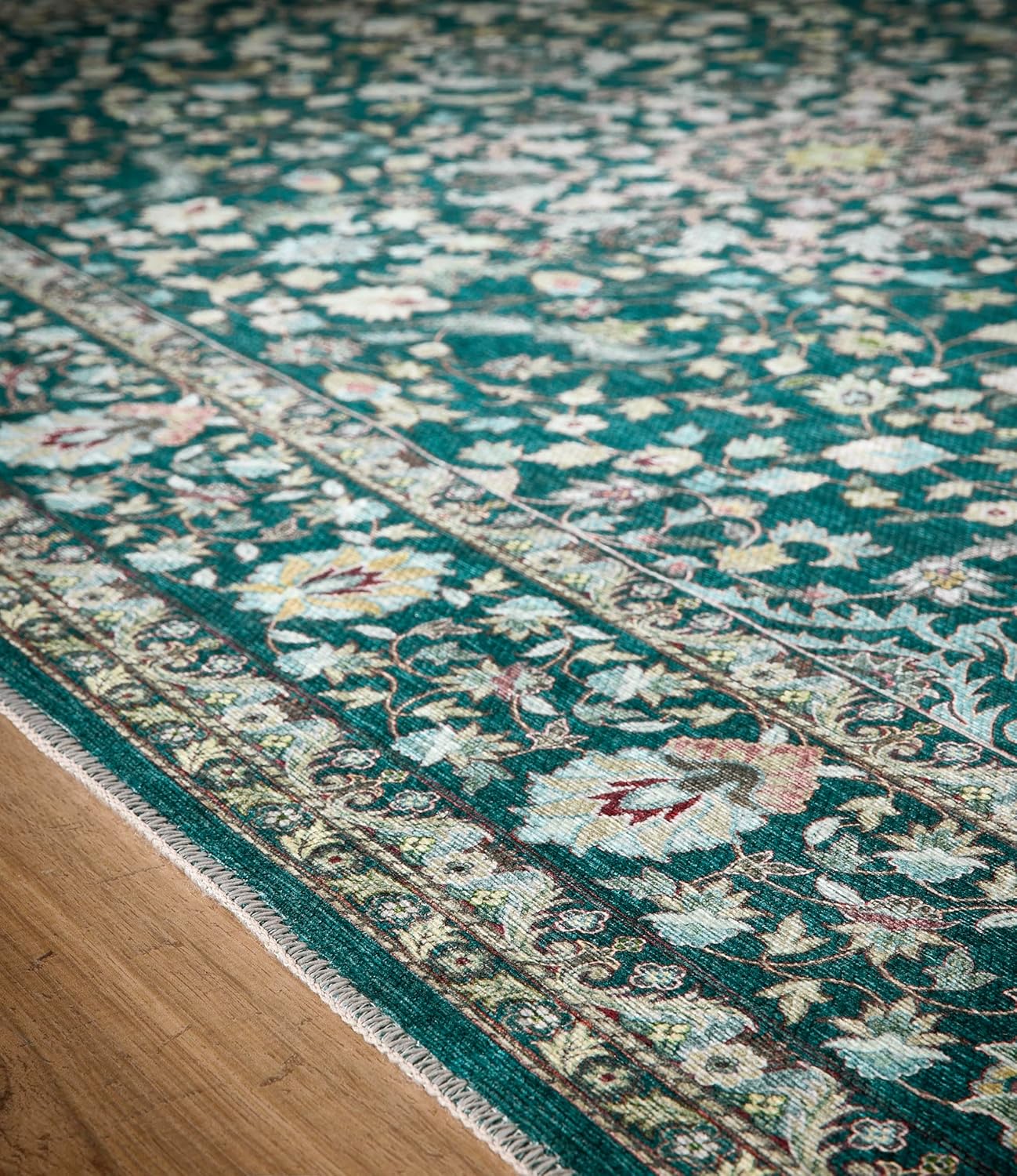 Verwandeln Sie Ihren Flur mit dem edlen Charme des waschbaren Windsor Emerald Green Runner – hier trifft traditioneller Stil auf moderne Funktionalität. Dieser 67 x 200 cm große Läufer in eleganten Dunkelgrün- und Smaragdtönen besticht durch ein klassisches Medaillon, eine verzierte Bordüre und eine sanfte Used-Optik für einen Vintage-Look, der jedes Interieur ergänzt.