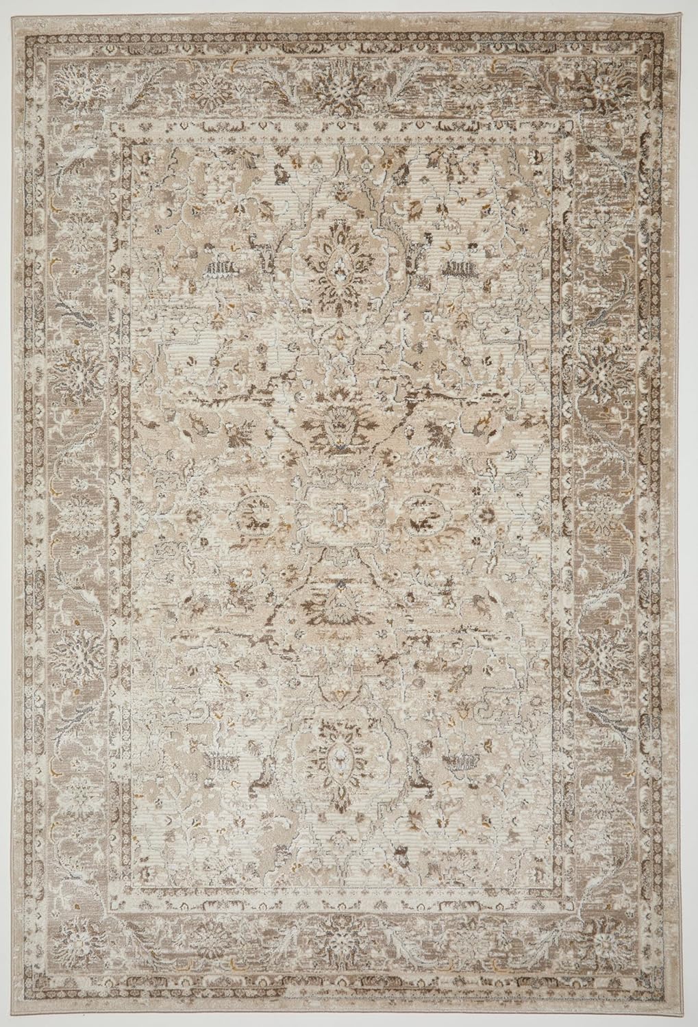 Bordered Cream Beige 553A2 – Traditional Vintage Rug for Dining Room, Living Room, Bedroom, Home Office, Kitchen