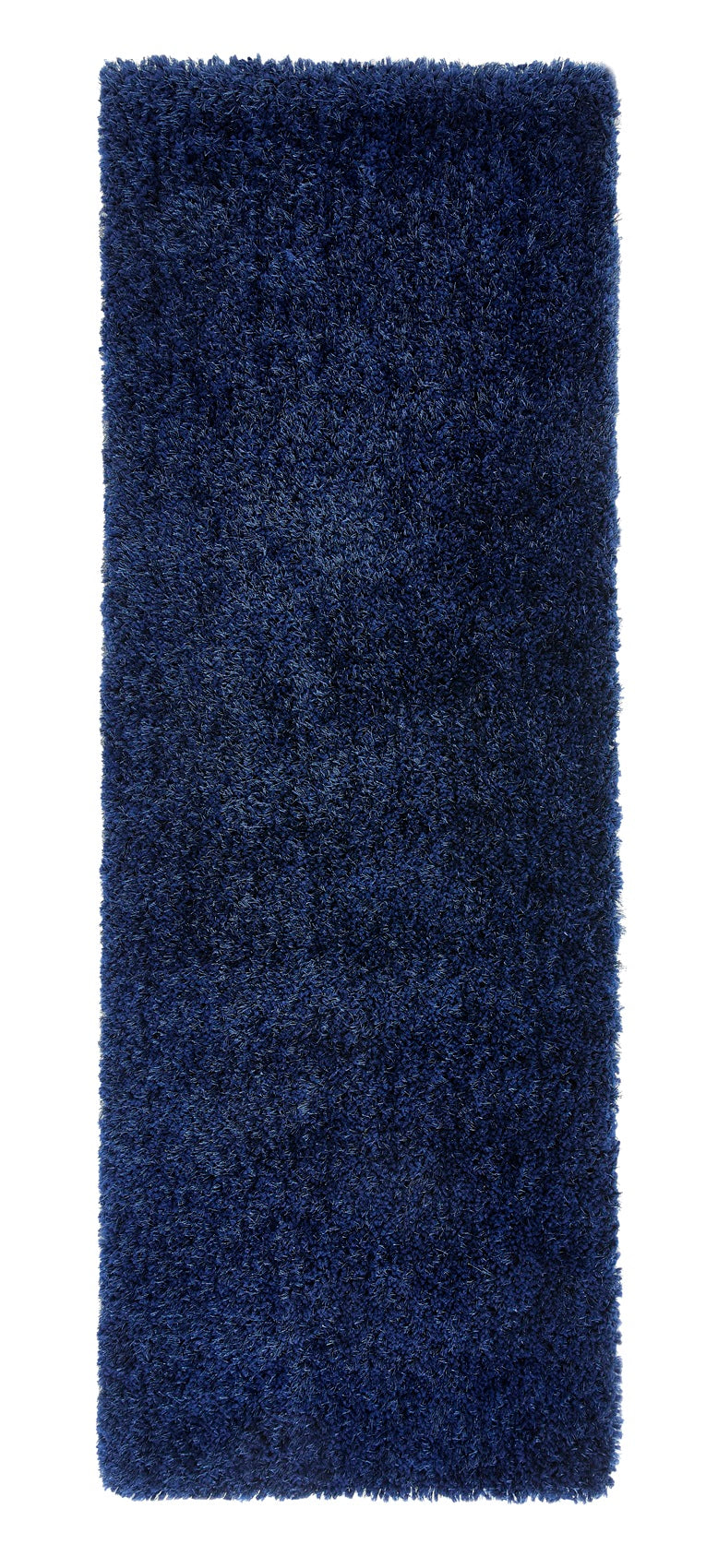 Chicago Shaggy Modern Plain Rug Hallway Runner in Indigo Blue