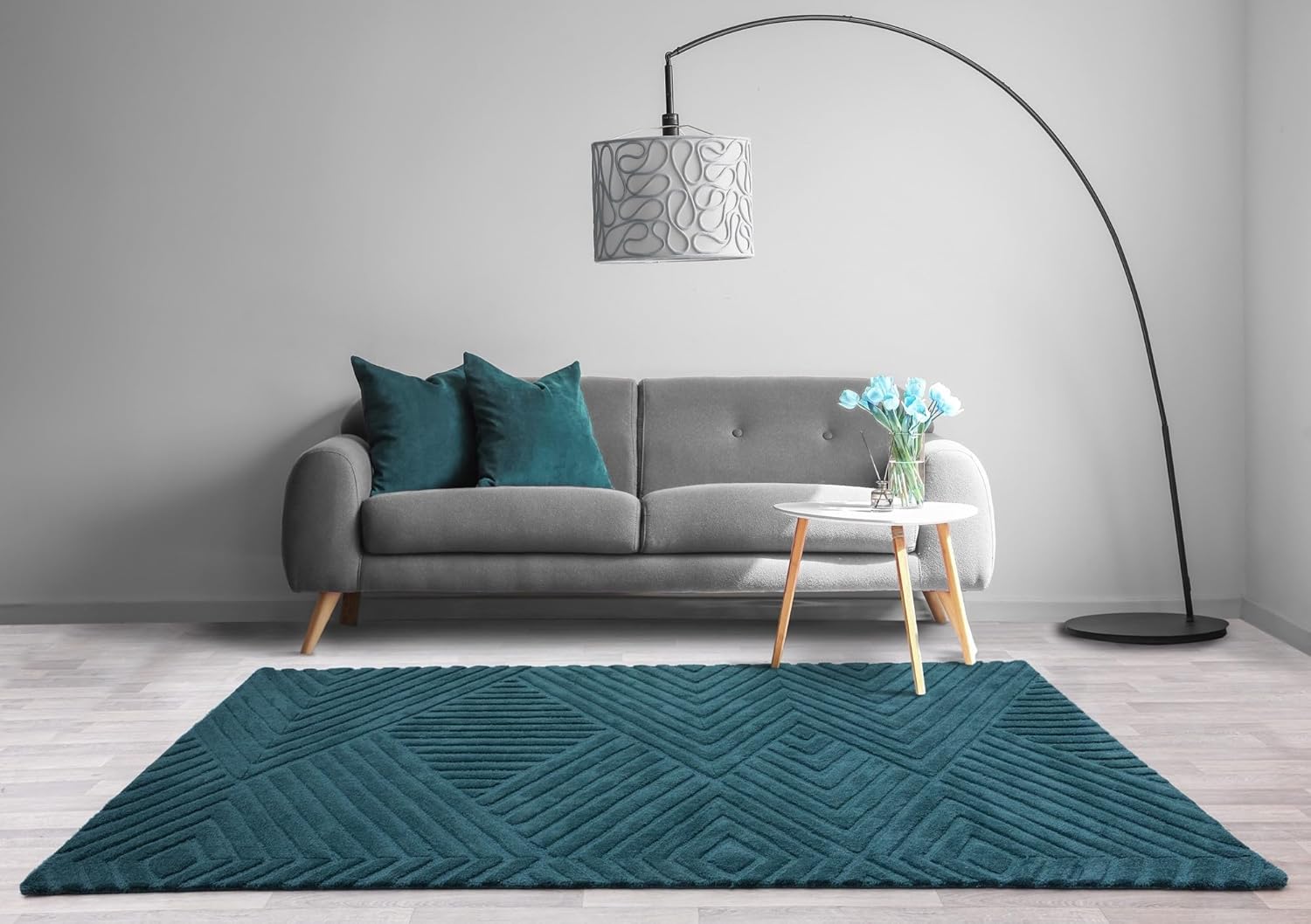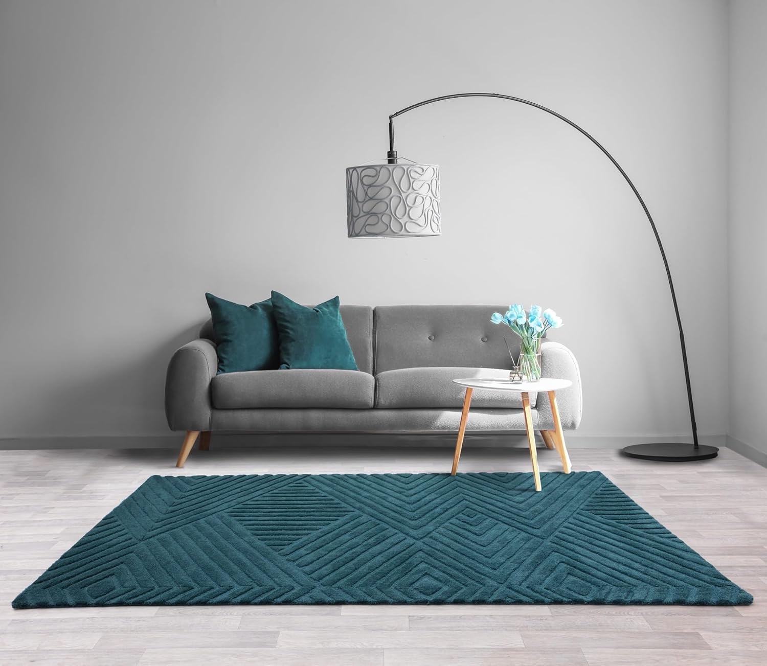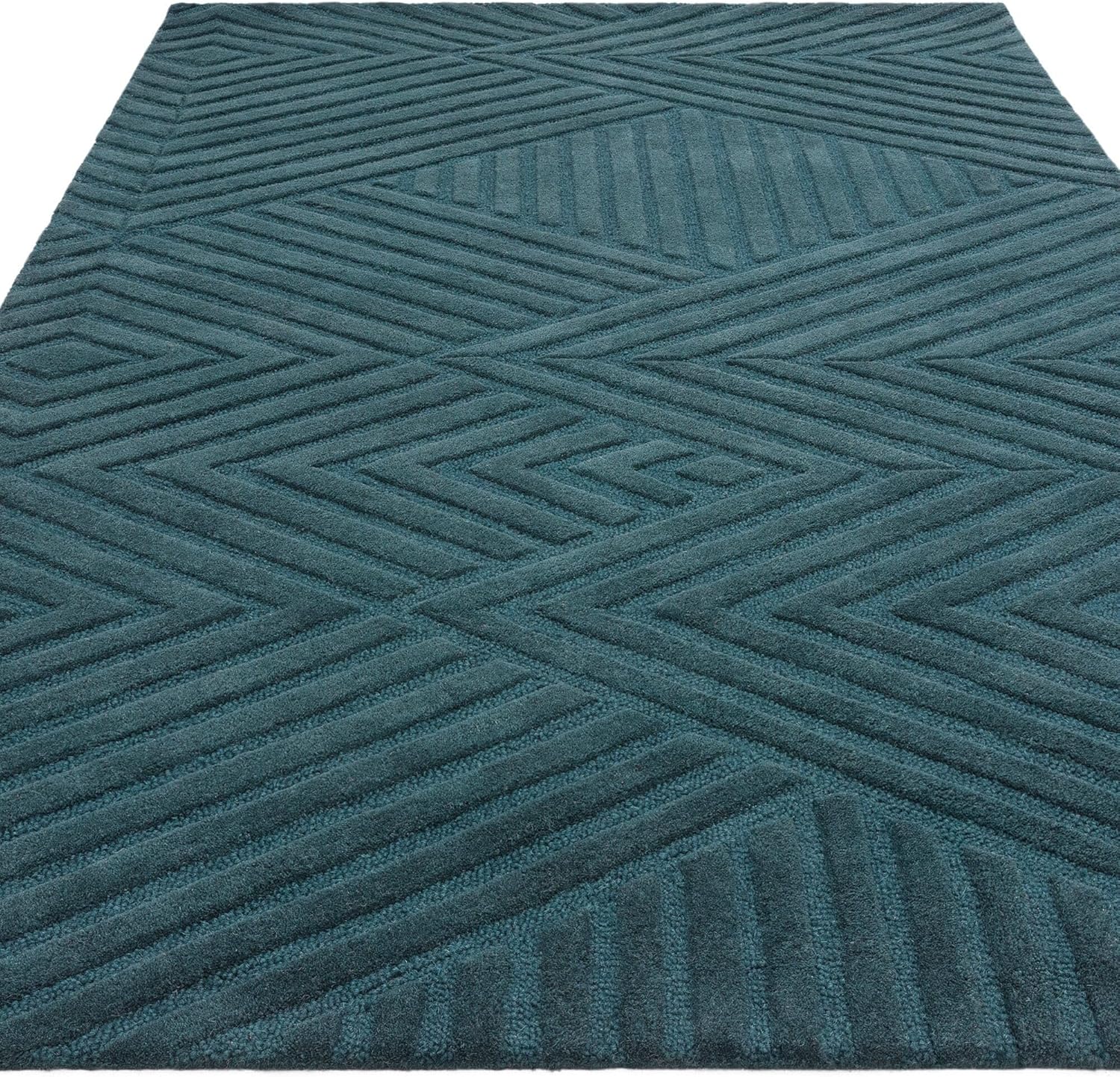 Add a touch of bold sophistication to your home with the Hague Hand Made Wool Rug in stunning teal blue. The hand-tufted geometric design combined with the plush wool texture makes this rug an elegant and durable centrepiece for any interior space.