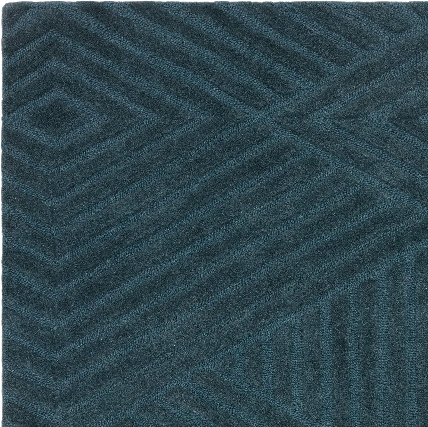 Hague Hand Made Wool Rug for Bedroom Dining Living Room Geometric Lines Tufted Modern Classic Soft Luxury Rug Teal Blue