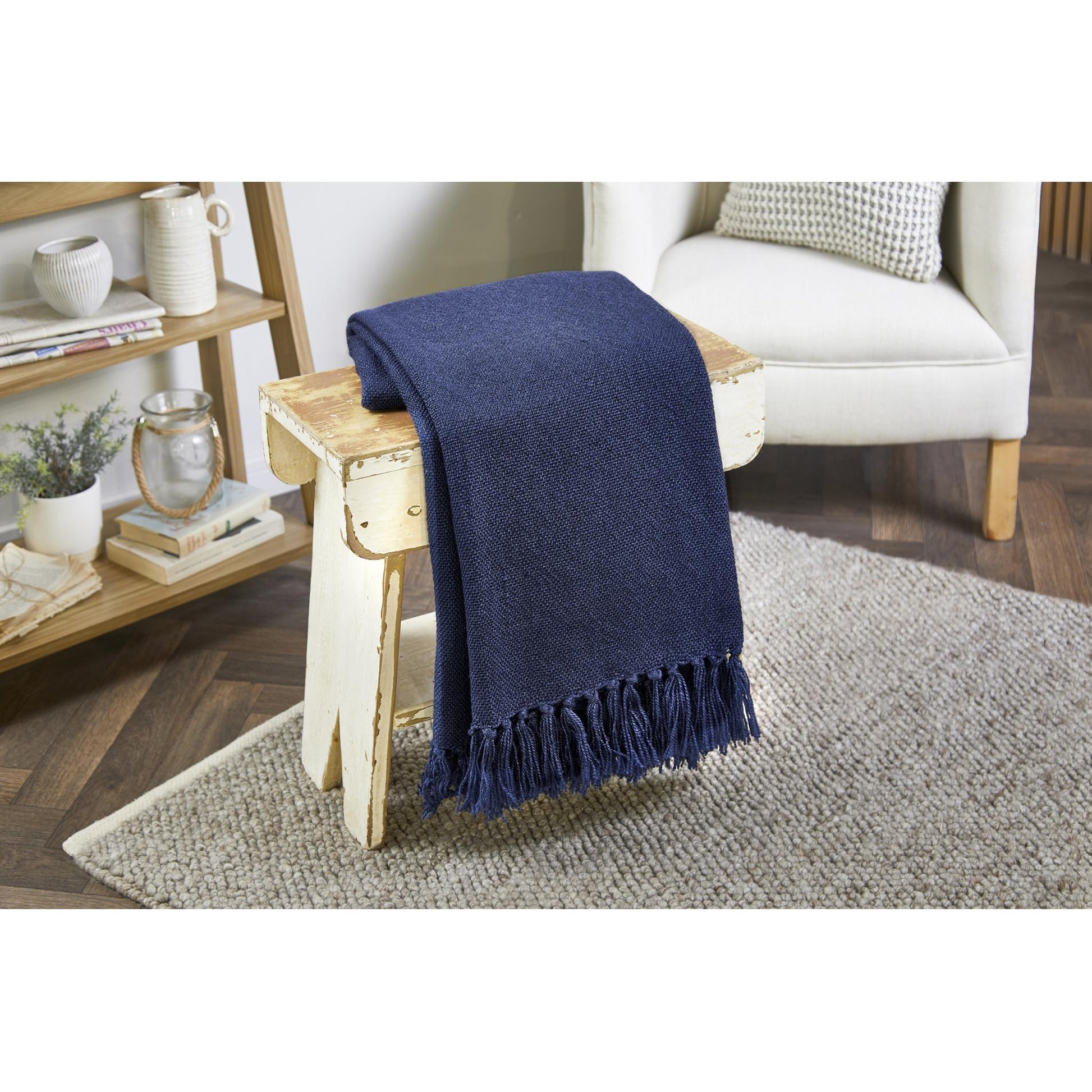 Hug Rug Woven Plain Throw Navy Blanket Bed Sofa Chair Cover in 130 x 180 cm