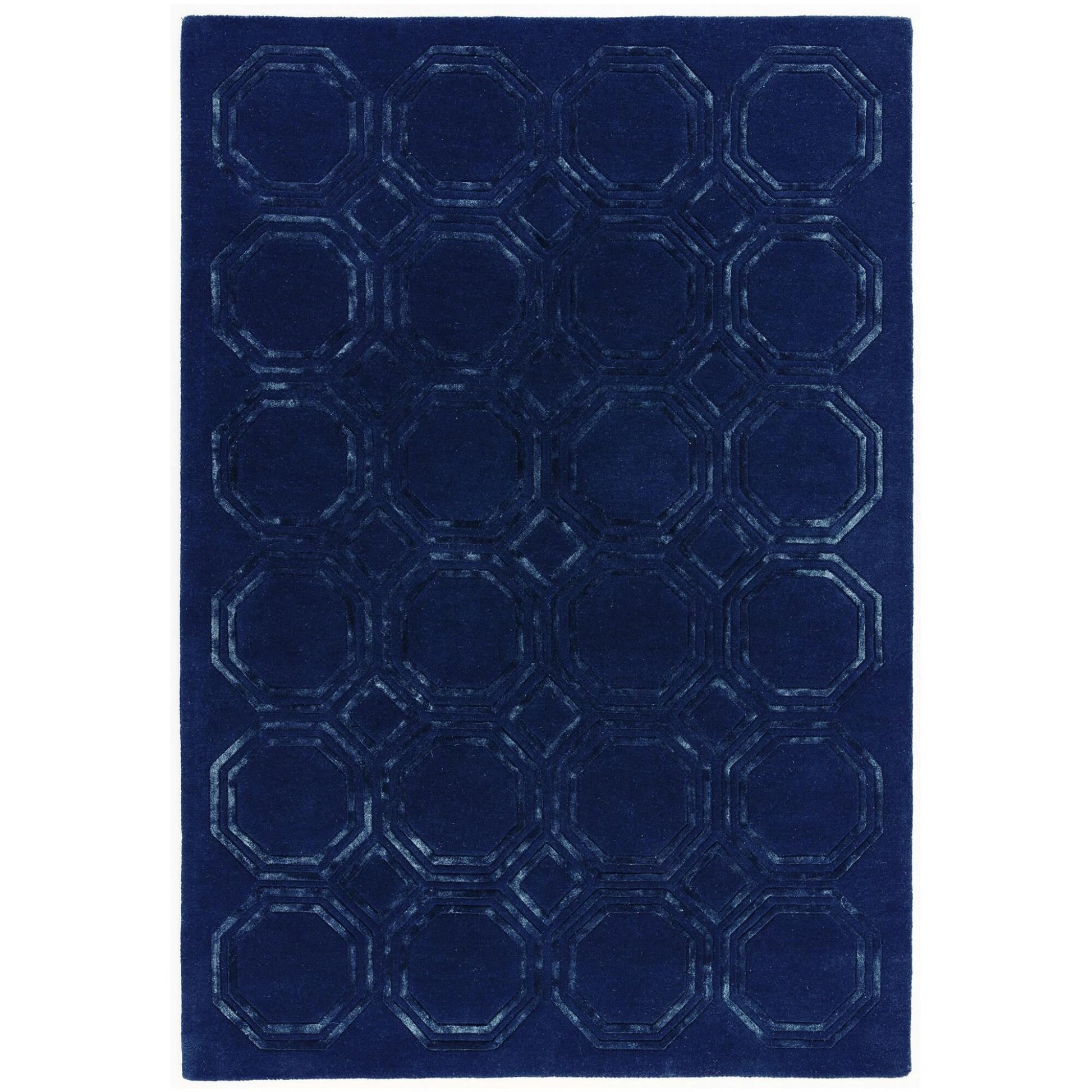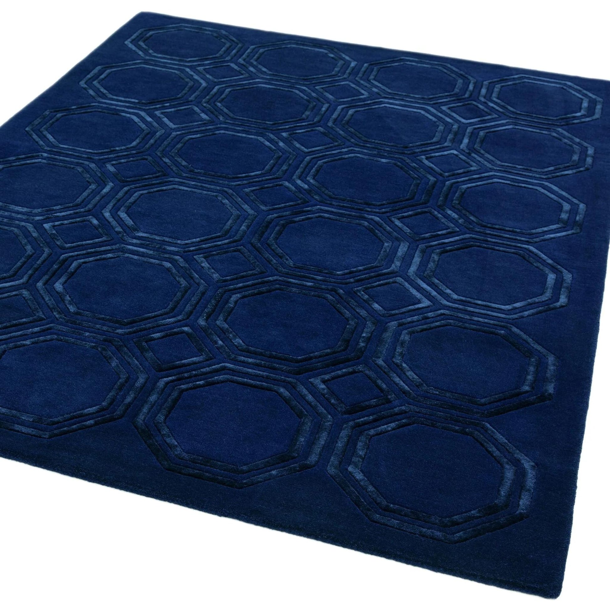 Nexus Octagon Navy Blue Wool Viscose Hand Carved Geometric Rug – Luxurious Soft