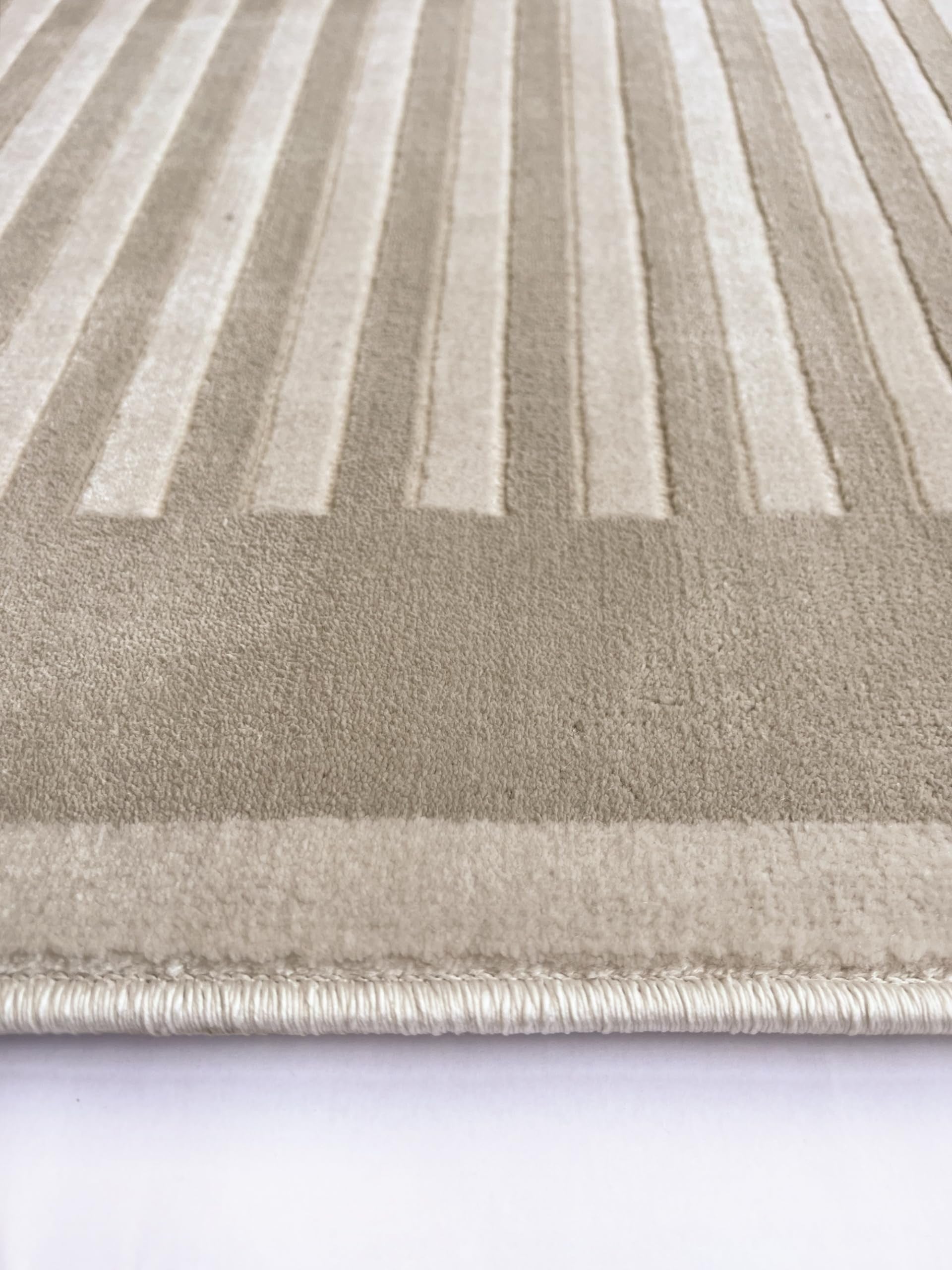 Striped Border Rug for Modern living Room Bedroom Soft Silky Velvety Natural Beige Quality Classic Short Pile Area Rug