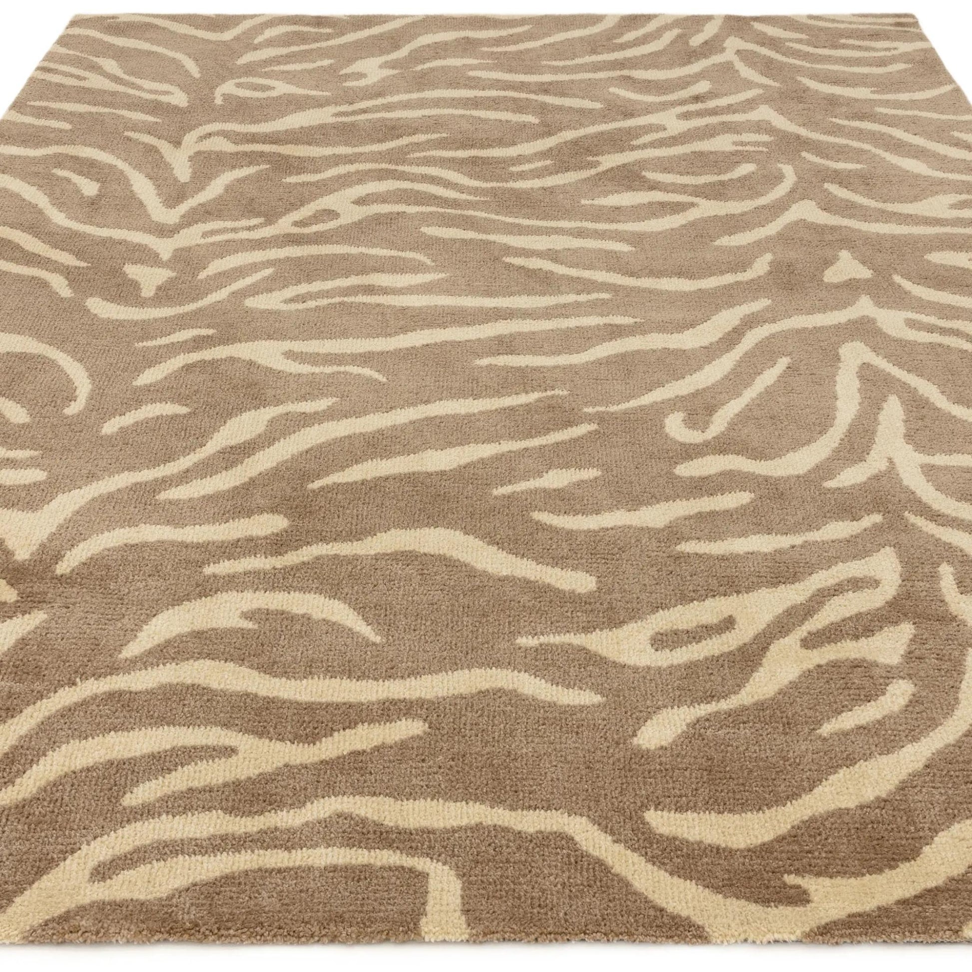 Tigra Hand Carved Wool Rug – Wild Safari Animal Pattern Sand Beige