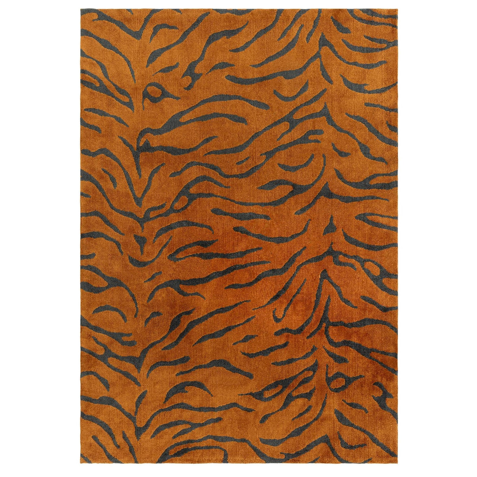 Wilder Tiger Spice Orange Animal Inspired Rug – Modern Soft Textured Polyester Carpet